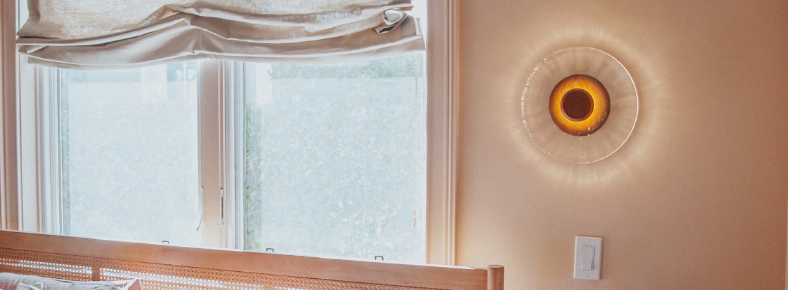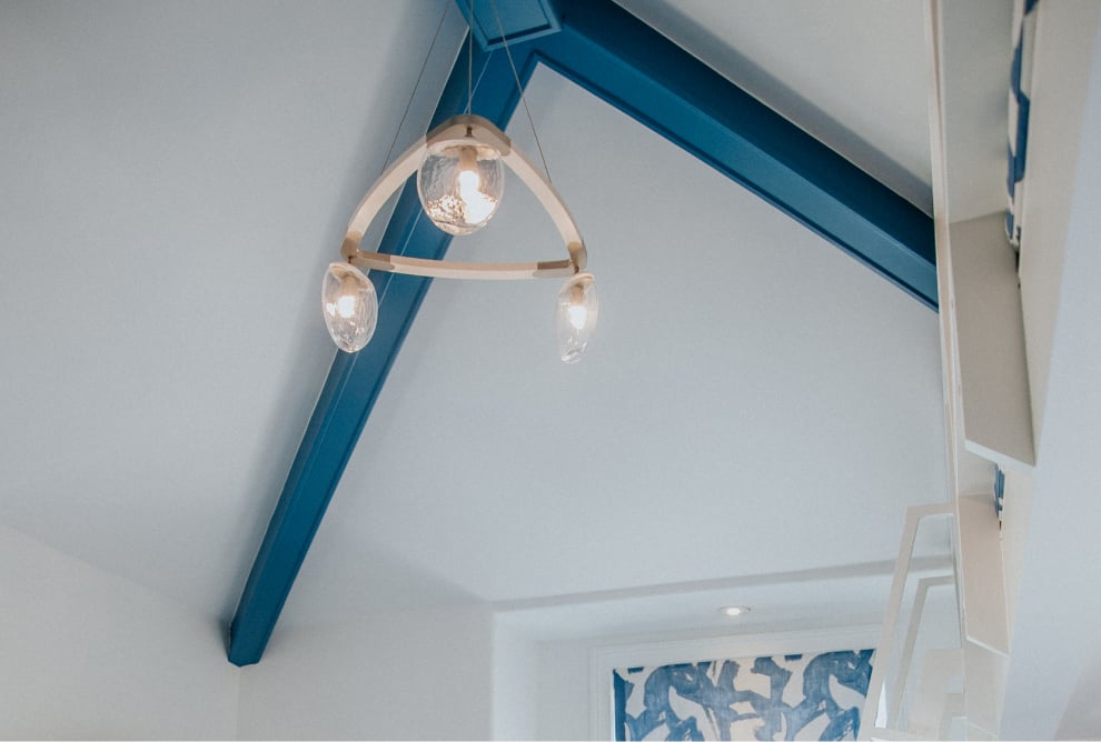 The clean lines of the Parallel Orb pendant play nice with a bold prehistoric print.