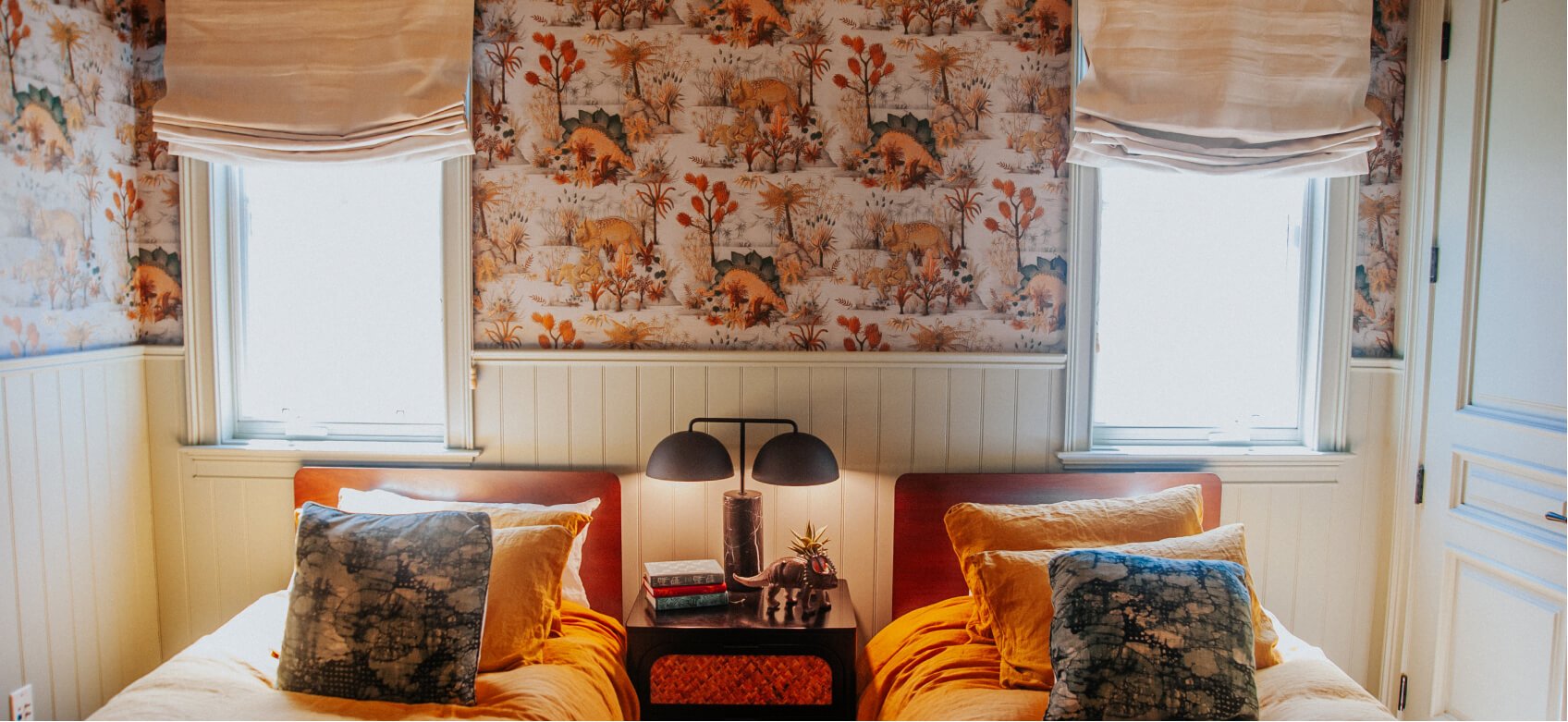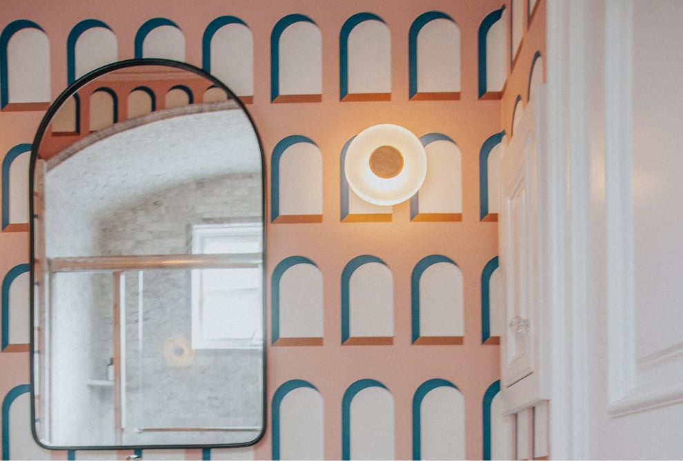 Claire Thomas has made her name in the food world (founding The Kitchy Kitchen) as a food stylist, chef and now director. She is now dreaming up spaces for herself and some very cool friends fresh with graphic wallpapers, pops of rainbow-hued shelving, and some spaces for kids to covet, with Hennepin Made lighting the way.