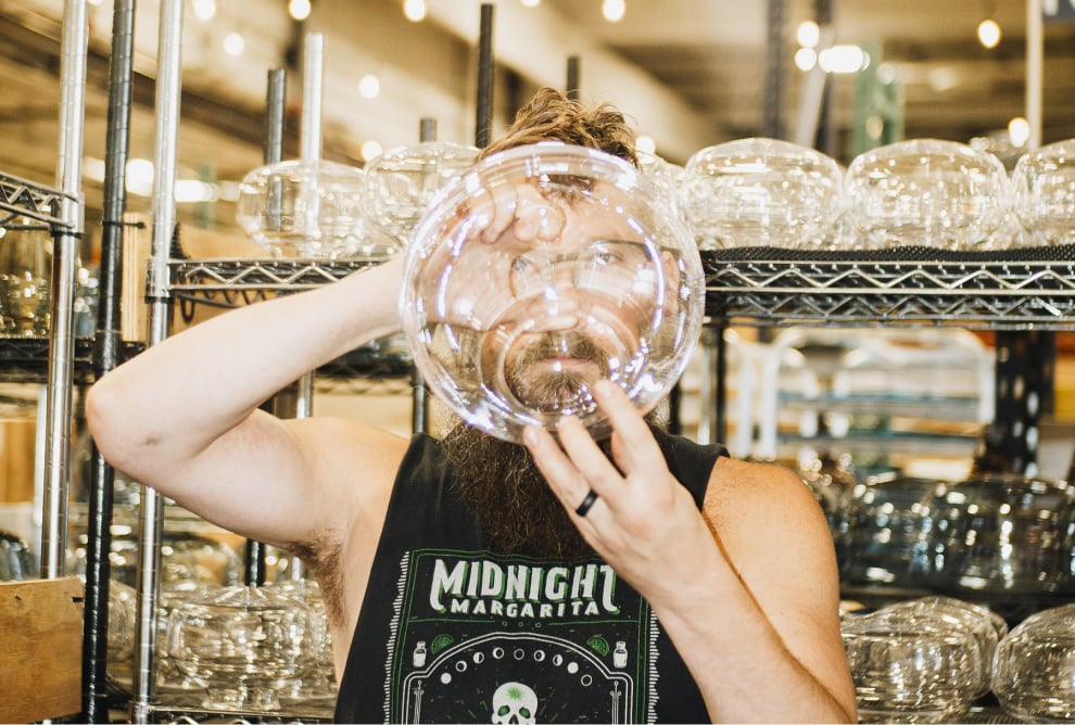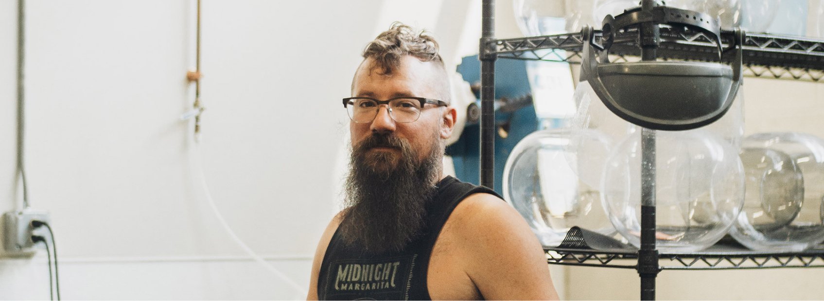 Kevin’s been in the hotshop for longer than anyone else—12 years to be exact. But his sights have been set on glass for much longer. Glass kept pulling Kevin in. From seeing Muran glass blowing on a family trip to Italy to seeing his brother blow glass in college, it was always catching his eye.