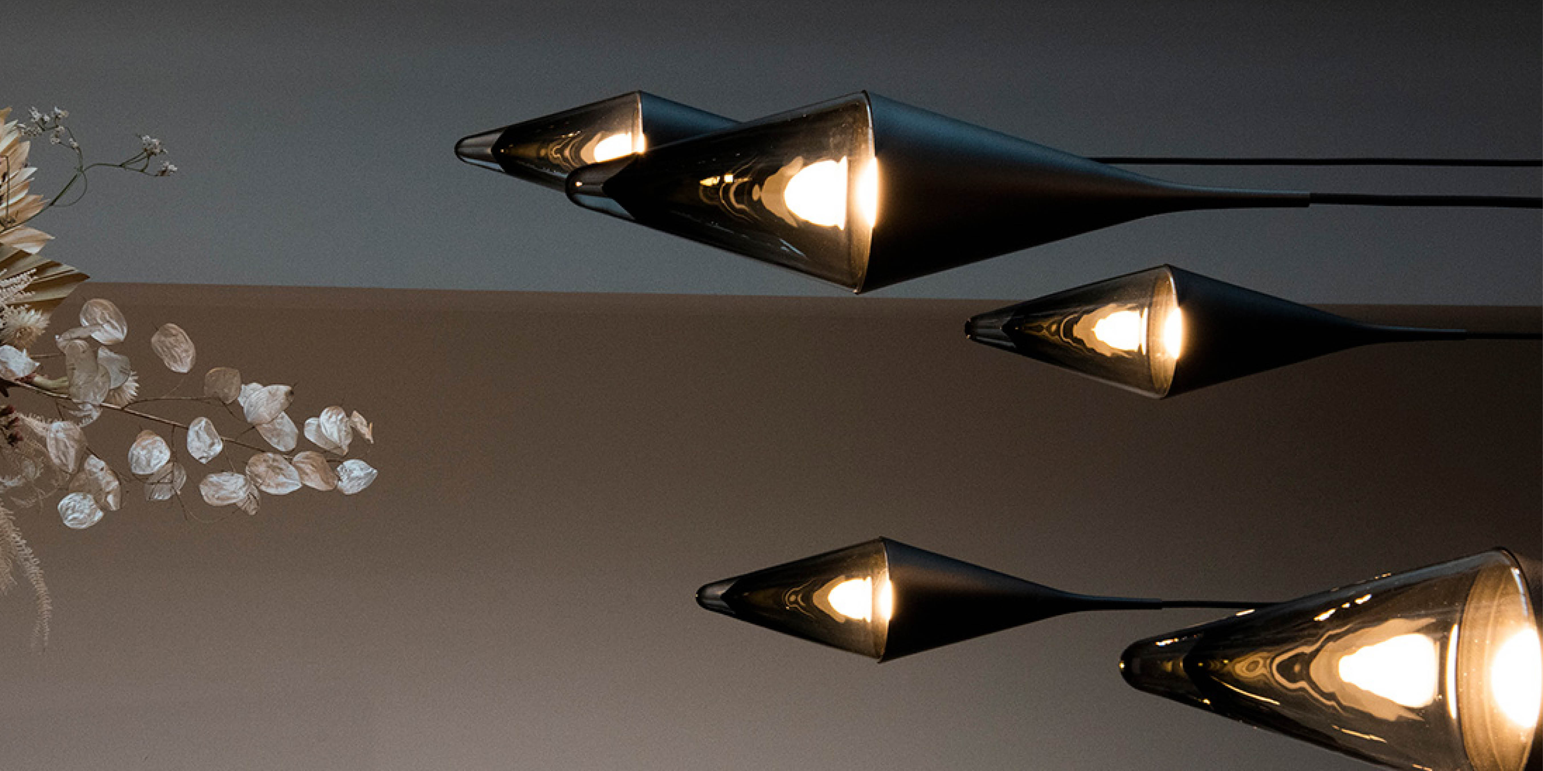 Our three piece arrangement is a perfectly balanced statement piece, playing with tension and symmetry. These fluid pendants were designed with both modern home, workspace, and hospitality settings in mind. This three light canopy is complete with 3 Neena pendants.