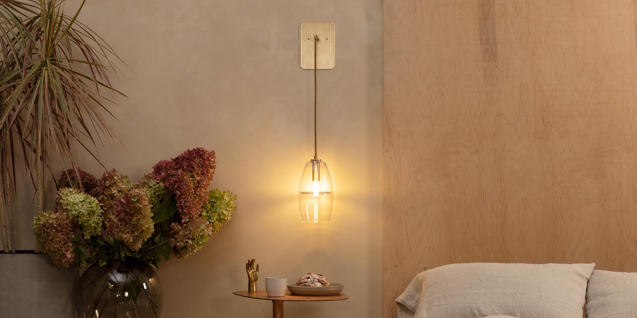 This elegant hand-blown fixture is comprised of a single glass band that captures the eye’s attention. Its tall, narrow shape houses a long filament bulb which produces a striking glow off the edge of the glass band.