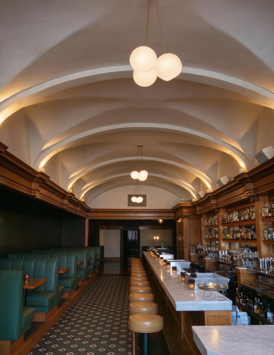 A craft cocktail experience in the North Loop of Minneapolis, Public Domain is nestled inside a classic turn of the century brick building. There’s no menu, instead, guests describe what they’re in the mood for and the mixologists craft something custom. In keeping with the custom experience, bespoke clusters of Lacuna pendants bring a warm ambiance and highlight the vaulted ceiling. Photos by Mira Visual Media.